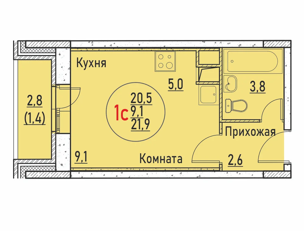 Студия 24.2 м2